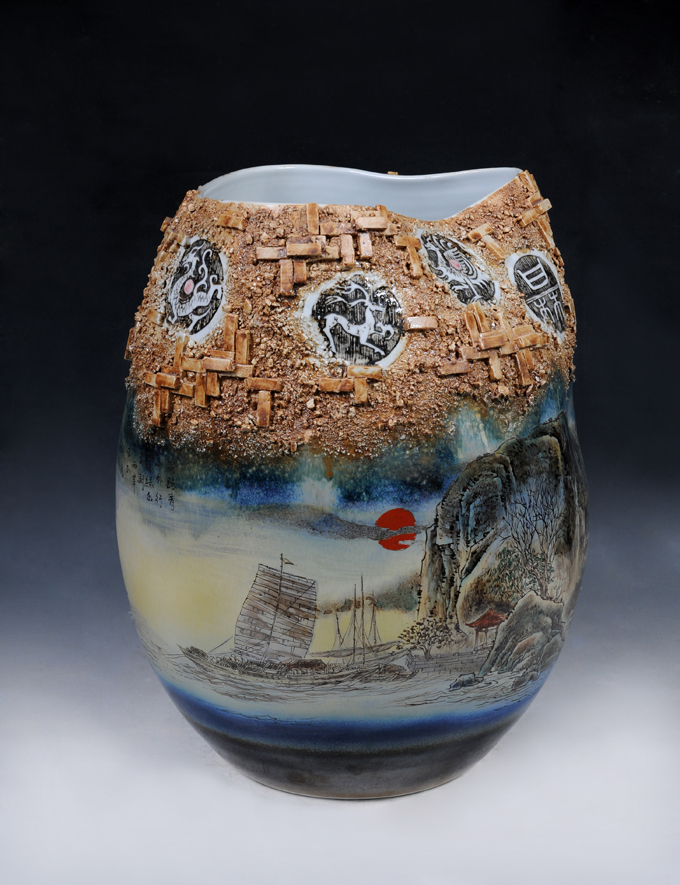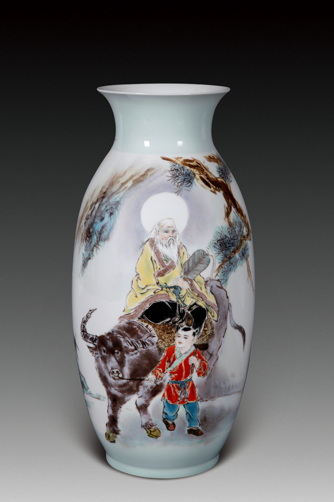 現(xiàn)在,徐金和有了自己的工作室,在陶瓷界也有了一定的名氣。在陶瓷創(chuàng)作上面,他注重吸收傳統(tǒng)精華和現(xiàn)代名家之長、追求較高的藝術(shù)品位,有較高的個性風(fēng)格、他的陶瓷釉上彩寫意人物畫多以傳統(tǒng)人物為題材,善于運用適度的夸張來強調(diào)人物的神情和意韻,表現(xiàn)手法不落俗套,敢于突破傳統(tǒng)瓷畫的模式。眾所周知,高溫顏色釉是陶瓷創(chuàng)作中最不好掌控的一個領(lǐng)域,一些成名多年的藝術(shù)家也不敢輕易嘗試。徐金和卻迎難而上,選擇了這塊需要高技巧綜合實力的創(chuàng)作領(lǐng)域。他很享受這種“火的藝術(shù)”,入窯一色,出窯萬彩,每一次的高溫窯變都能帶給他巨大的震撼。所謂“窯變”,主要是指瓷器在燒制過程中,由于窯內(nèi)溫度發(fā)生變化導(dǎo)致其表面釉色發(fā)生的不確定性自然變化。高溫色釉非常“嬌氣”,釉料的些微差別,窯內(nèi)溫度、氣氛的稍微改動,都有可能影響高溫色釉的成品效果。在藝術(shù)的追求中,徐金和是個勇于挑戰(zhàn)的人,他用自己精湛的陶瓷技藝與獨特的創(chuàng)作手法相結(jié)合,將高溫色釉運用到了陶瓷人物創(chuàng)作上來,如此出來的效果也是驚人的。高溫窯變藝術(shù),也是一種返璞歸真的陶瓷藝術(shù)。