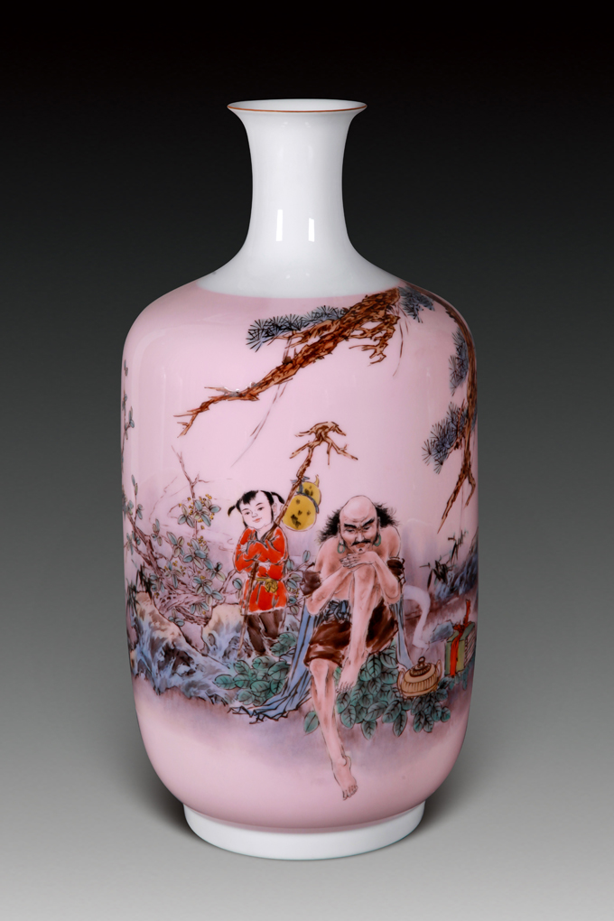 除了高溫顏色釉,年輕的徐金和在陶瓷創(chuàng)作上也是個多面手。青花、粉彩、新彩,他也是樣樣精通,除了主攻人物,其它創(chuàng)作題材亦嫻熟自如。