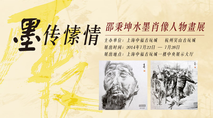 2014年7月22日,著名浙派畫家邵秉坤先生將在上海中福古玩城舉辦水墨肖像人物畫展,這是作為以山水風(fēng)景畫聞名的邵先生首次在浙江以外舉辦肖像人物畫的展覽,六十多幅神形兼?zhèn)涞囊涣魉宋锂媽Ыo觀眾強(qiáng)烈的視覺(jué)和心靈的震撼。