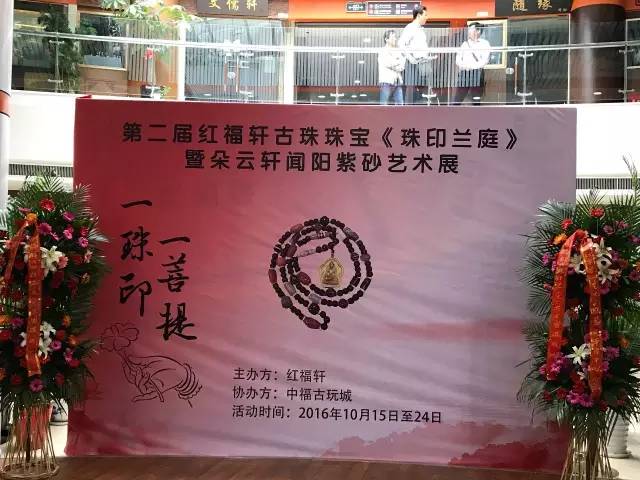 ????? 由中福古玩城紅福軒、朵云軒聯(lián)合舉辦的?“一珠印一菩提”第二屆紅福軒古珠珠寶《珠印蘭庭》暨朵云軒聞陽紫砂藝術(shù)展,10月15日10時(shí)58分整在中福古玩城一樓中福文化藝術(shù)交流中心開幕!