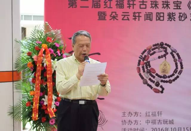 ????? 首先,原靜安區(qū)文化局局長王金勃先生致辭,他表示了非常榮幸被邀參加此次活動(dòng)開幕式,認(rèn)為此次展覽藏品豐富、藏品涵蓋區(qū)域?qū)拸V,很多都是極為少見的寶貝,并對紅福軒軒主翟秀紅女士對珠子的研究從懵懂-了解-癡迷-鉆研,一直到紅福軒的創(chuàng)辦表示了極大的認(rèn)可。此次與朵云軒的共同舉辦,他感到非常的高興,因?yàn)樗粌H是朵云軒聞陽先生的粉絲,更與聞陽先生的父輩一起任過職,最后預(yù)祝此次展覽取得圓滿成功。