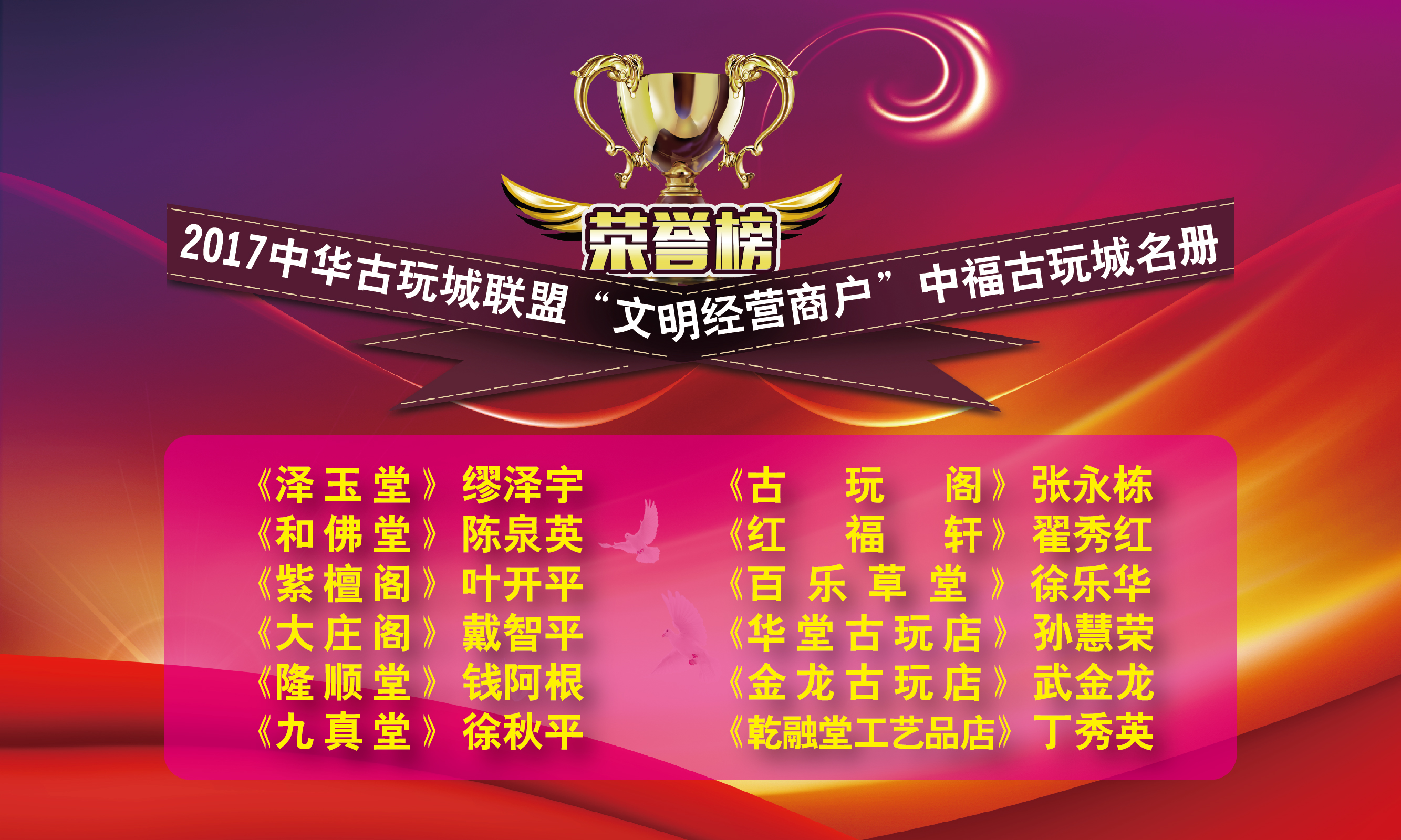 12中福古玩城商家榮膺中華古玩城聯(lián)盟2017年“文明經(jīng)營商戶”稱號(hào)