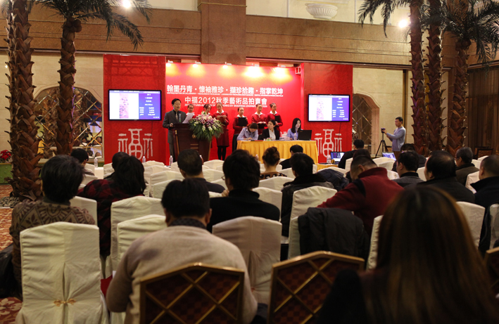 上海中福拍賣公司2012秋季拍賣12月29日于中福大酒店中廳圓滿結(jié)束,此次秋拍共分“翰墨丹青·懷袖雅珍·擷珍拾趣·指掌乾坤”四個(gè)專場,共征集到拍品625件,總成交率為51.03%,總成交額總成交額495.55萬元。